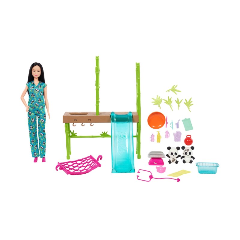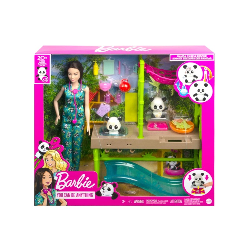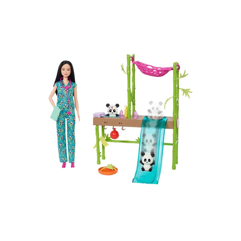 With the Barbie Care and Rescue Pandas Playset, kids can explore their adventurous and caring side with Barbie vet doll who does everything she can to save the pandas.