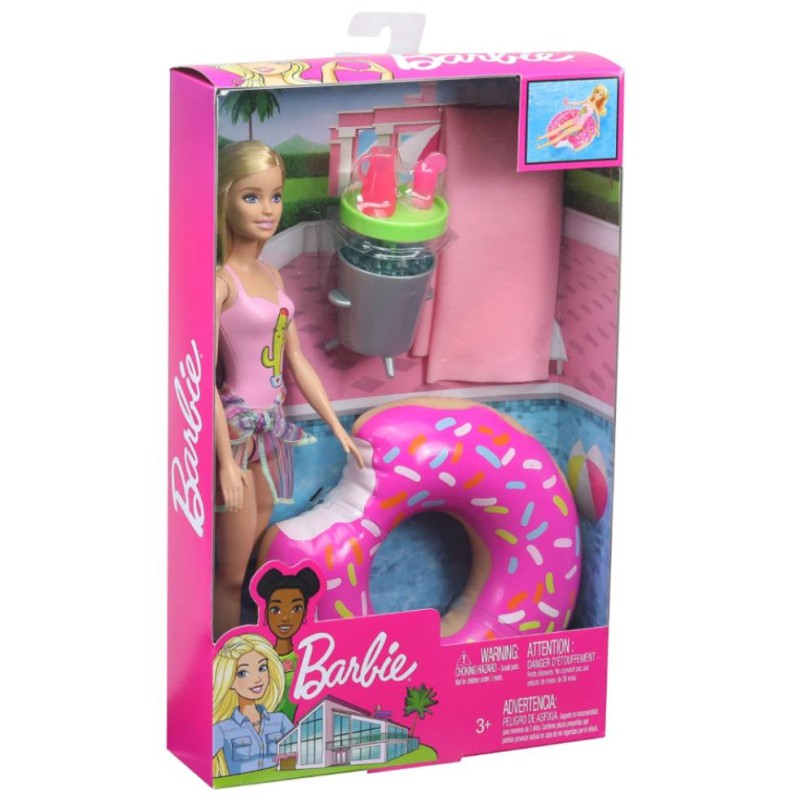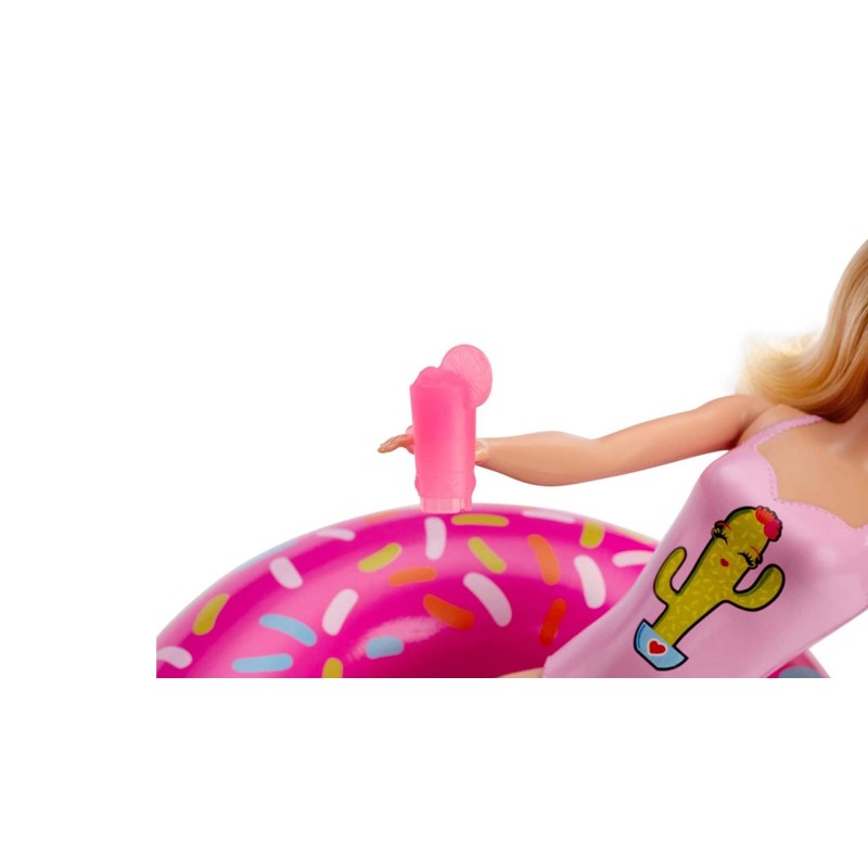 Just place the donut-shaped float in the water to see it float, then place Barbie on it to see her float too!