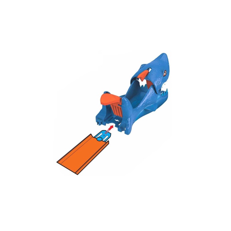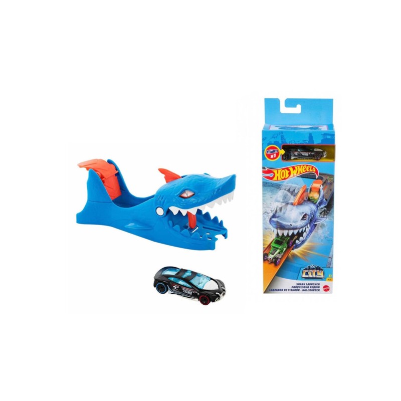 The Hot Wheels Shark Launcher is a complete playset that includes a 1:64 scale Hot Wheels car. It can also connect to other Hot Wheels City sets (sold separately) via two connection points.