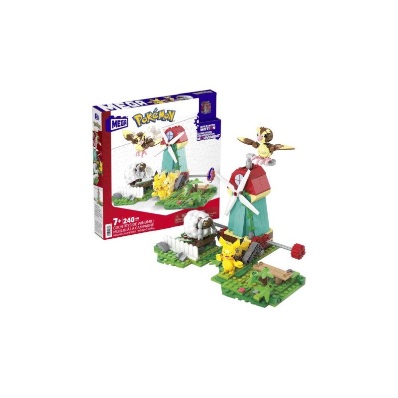 Build the windmill and the countryside, then turn the crank to watch Pikachu, Pidgey and Wooloo come to life.