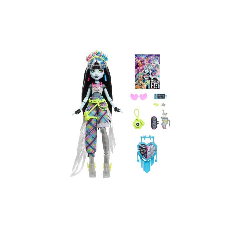 Monster High Frankie Stein doll has a ticket to Monster Fest - the best musical party of the year.