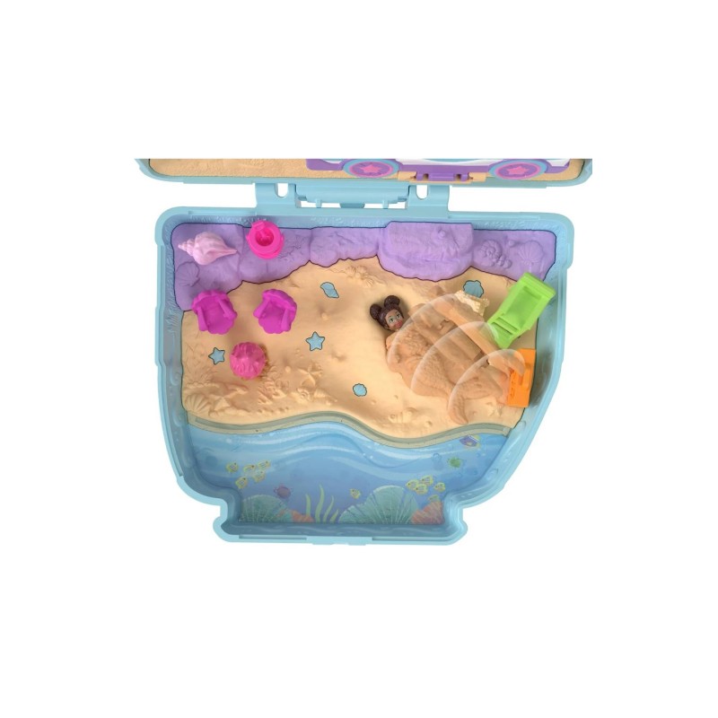 Inside the compact, you'll find a vibrant seaside scene full of exciting activities and delightful surprises.
