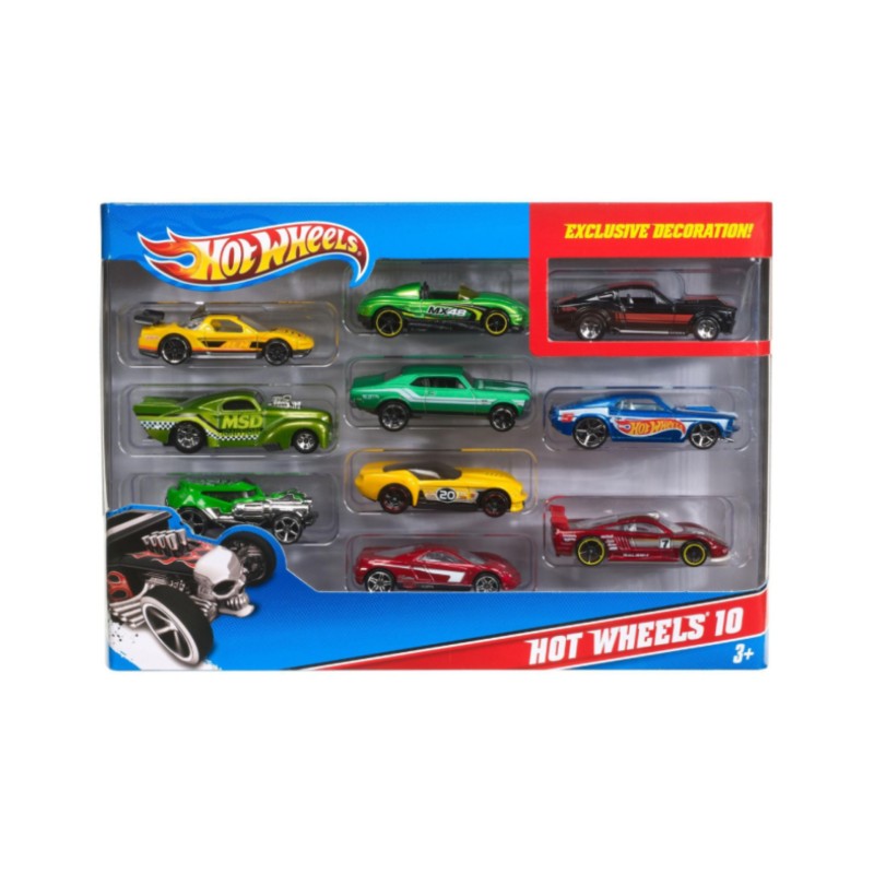 It's an instant collectible with a 10-car Hot Wheels vehicle pack. Each vehicle in the pack is designed with authentic style and eye-catching decorations!