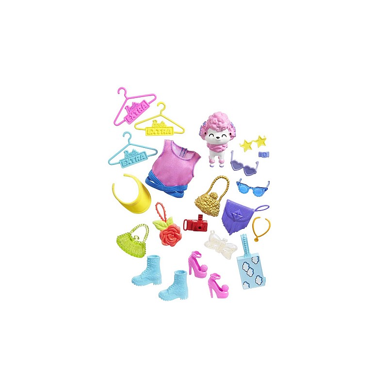 Liven up any outfit with 20 accessories, including a fun pink top, 2 pairs of shoes, 6 handbags, 2 pairs of sunglasses, jewelry, hangers and more.