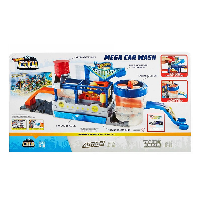 Recognizable Car Wash themed set with surprising features. The set has an automatic conveyor belt and color changing technology. The set comes with a Hot Wheels car.