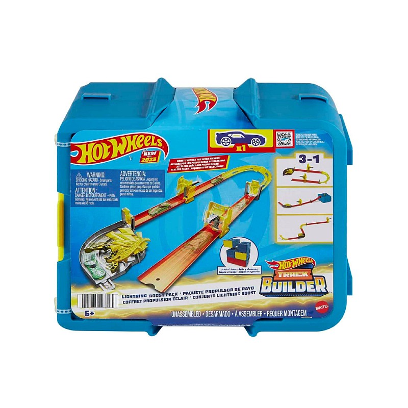 Build and rebuild a lightning-fast track with the Hot Wheels Lightning Boost Pack, which comes in a cool modular storage box.