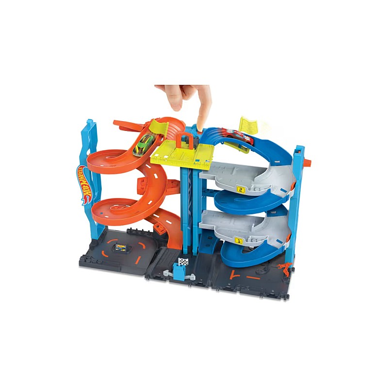 Experience epic 2 -in -1 races with Hot Wheels City Transforming Race Tower.