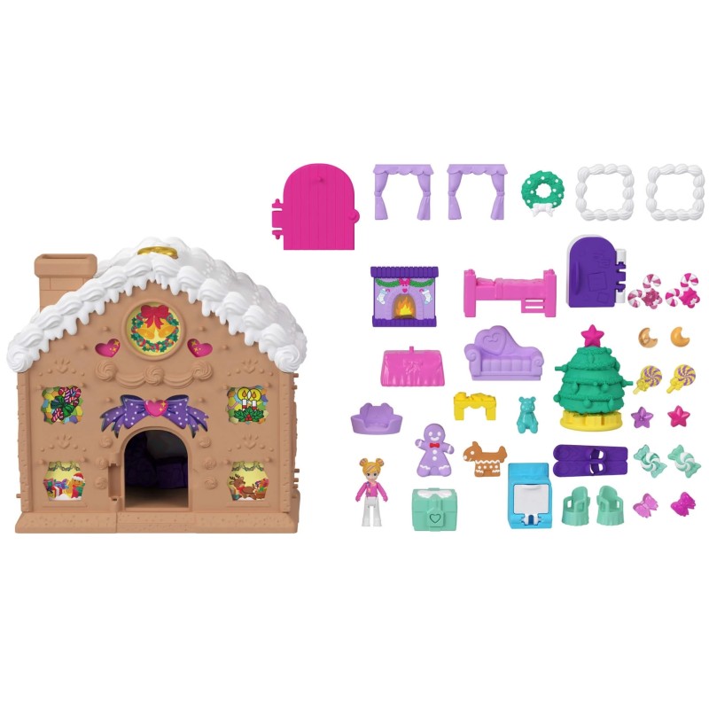 Kids can celebrate the season and play with their surprise gifts in every room of the gingerbread house!
