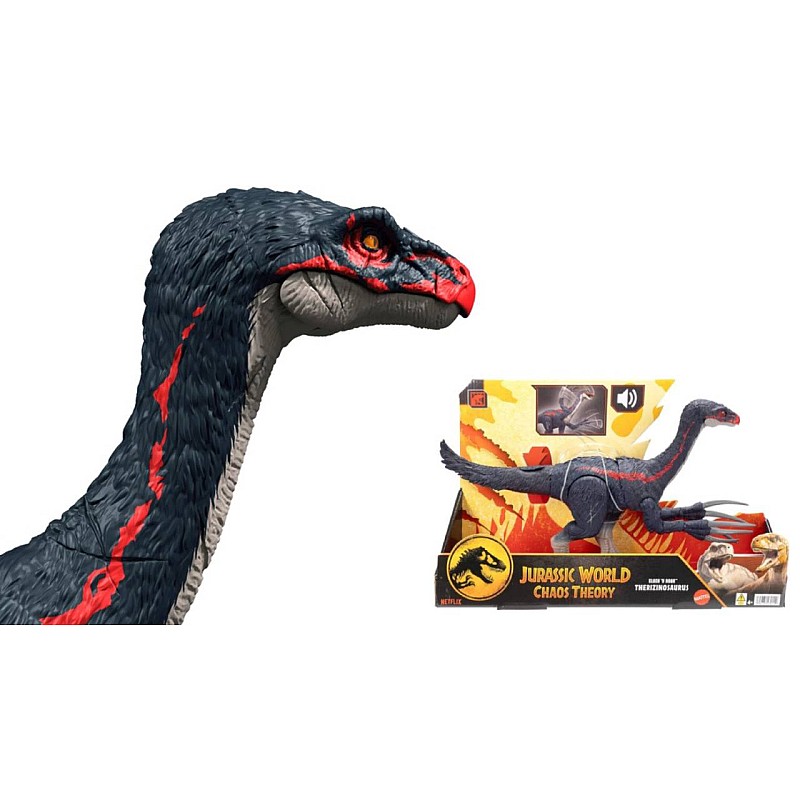 The Jurassic World Therizinosaurus toy is designed in accordance with the series with attack and sound features.
