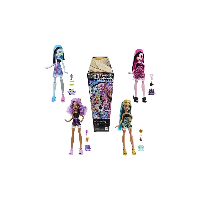 The Boo crew is under the cover! Monster High Buried Secrets dolls offer an Eek-read-reader experience with a mysterious doll and 5 Cozy Creepover accessories.