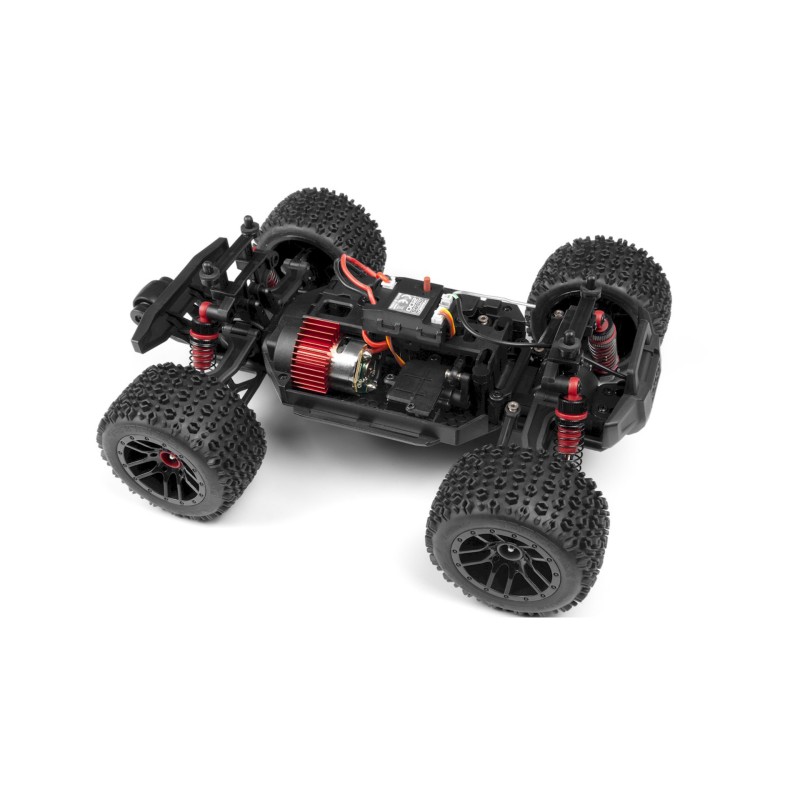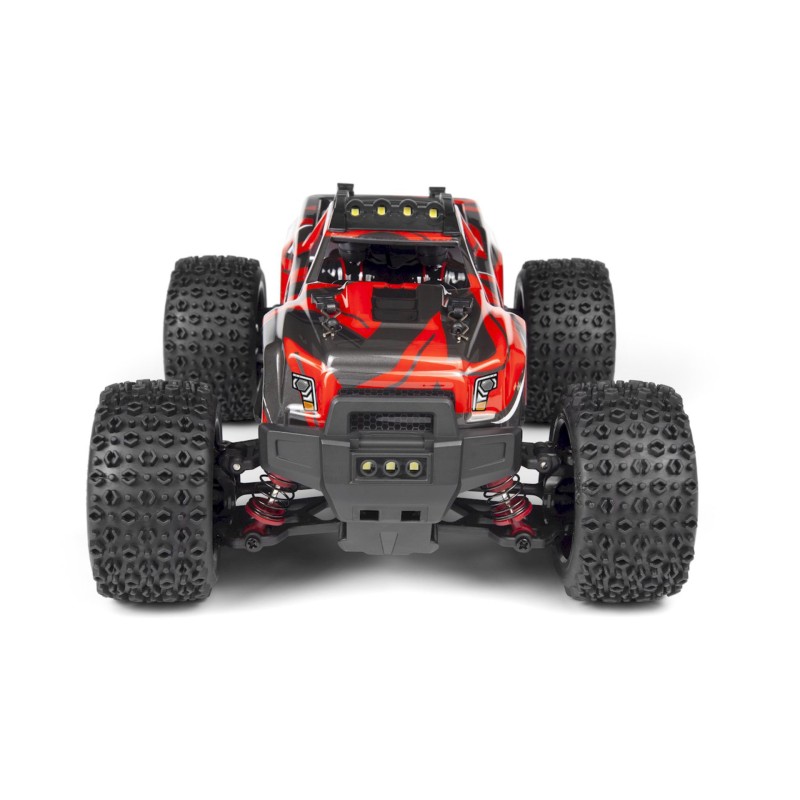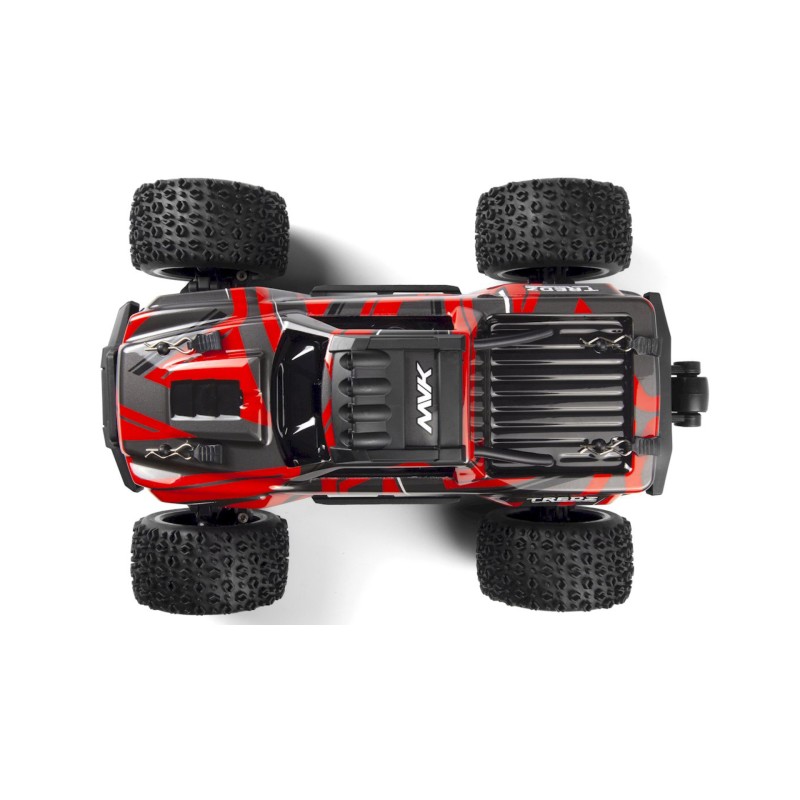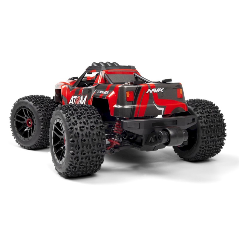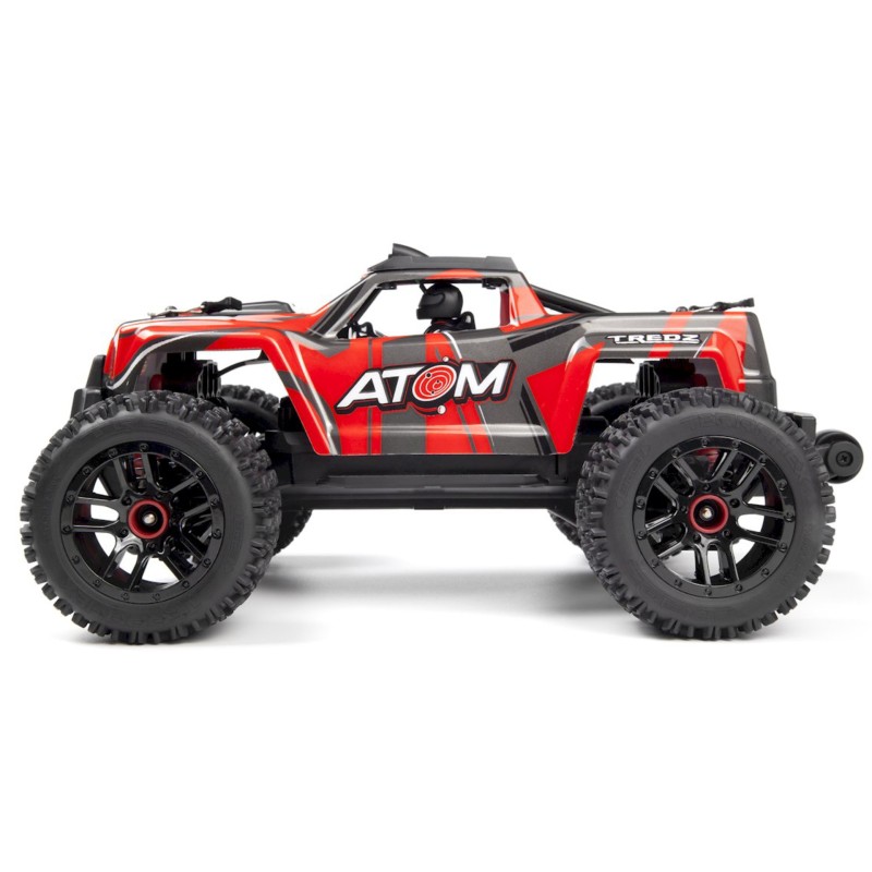 The ATOM is equipped with a custom screen-printed truck body, reinforced with a cage, available in four colors for a monster truck-scale appearance.