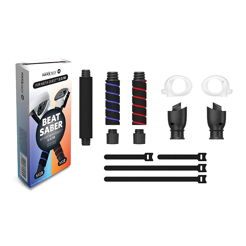 The Beat Saber kit is now compatible with both meta Quest 3/3S and Meta Quest 2, including all the connections needed for left and right VR controllers.