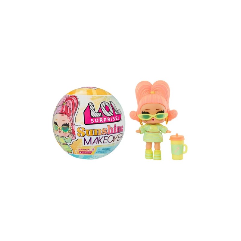 Will he spit, cry or pee? Each doll L.O.L. Surprise Sunshine Makeover includes 8 surprises: (1) L.O.L. Surprise! Sunshine Makeover Doll; (2) Outfit; (3) Shoes; (4) Bottle; (5) Bottle; (6) Accessory; (7) Secret Message; (8) UV discoloration.