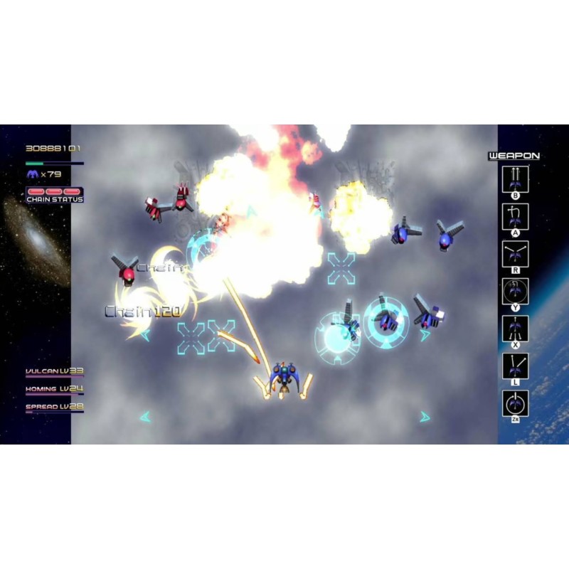 There is a chain bonus that keeps increasing the score by repeatedly defeating the same enemy, a secret bonus generated by defeating enemies in a certain order, and a hidden score element.