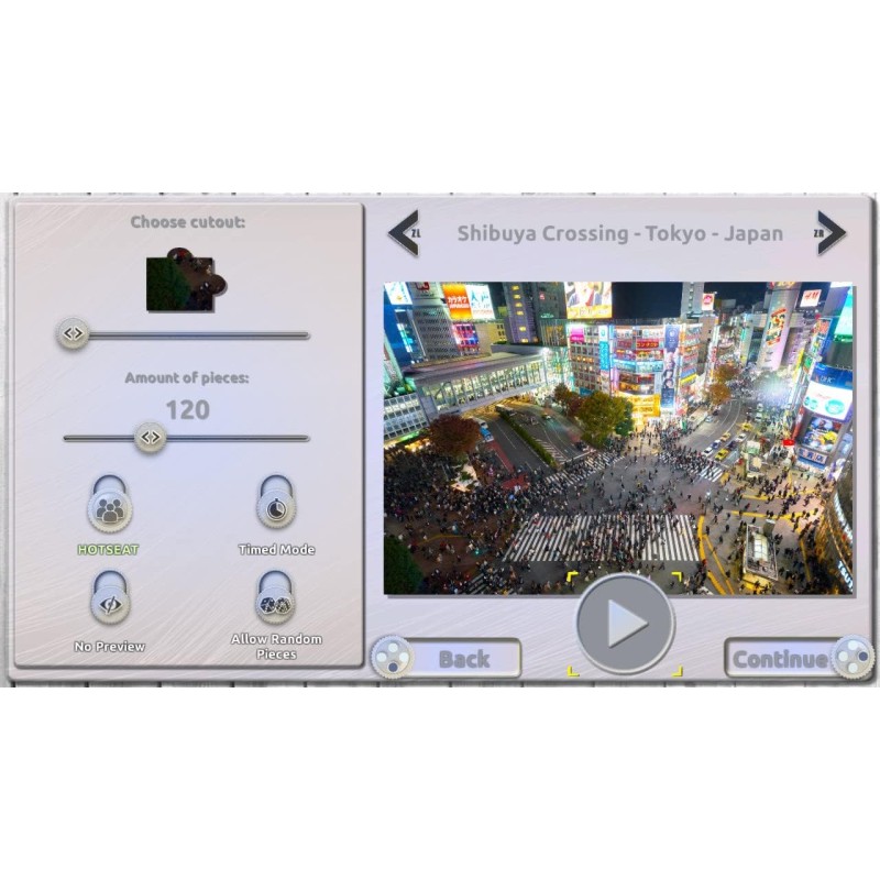 Choose puzzles from 30 to 600 pieces and play solo or together with up to 4 players.