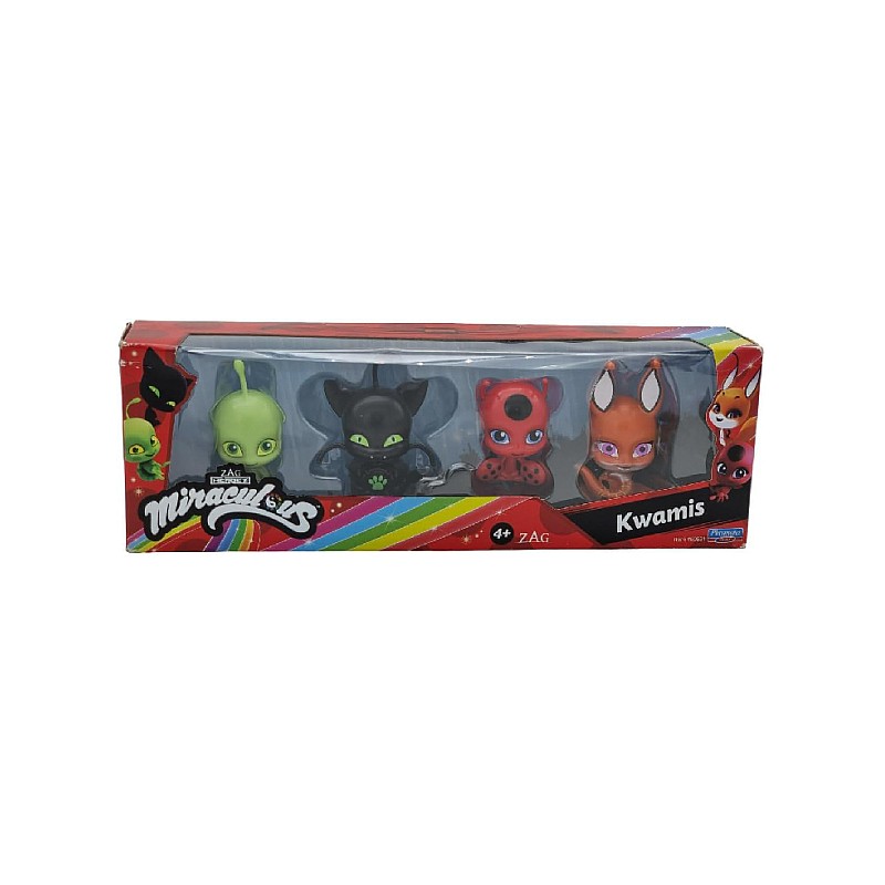 The set includes 4 essential Kwami: Tikki, Plagg, Nooroo, Wayzz.