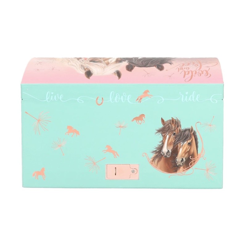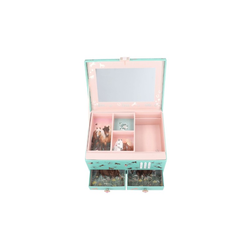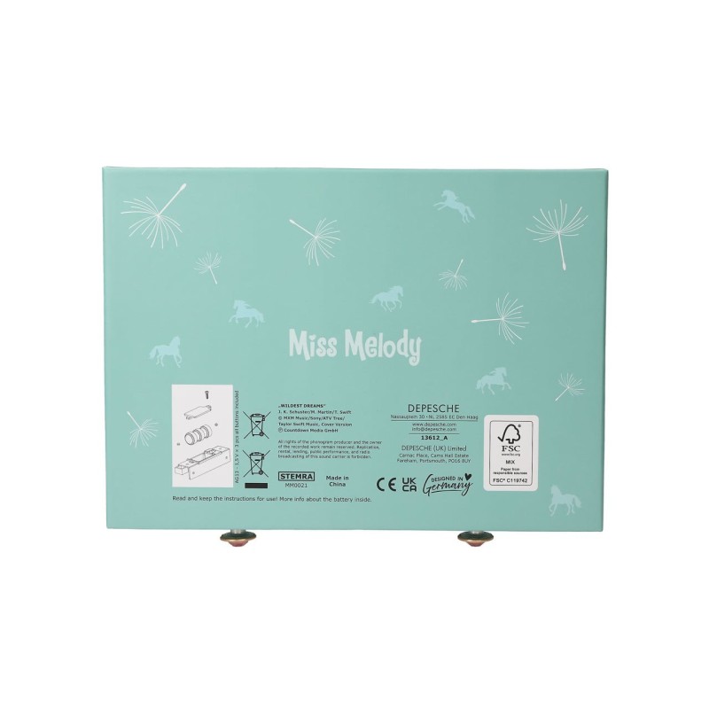 Adorned with capricious motifs of playful horses and icons, this jewelry box is a real testimony of Miss Melody's delightful world.