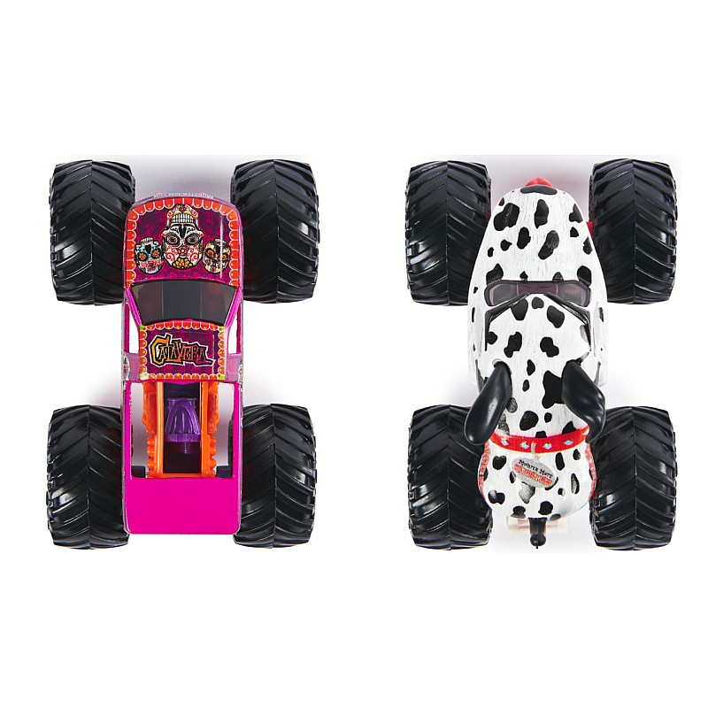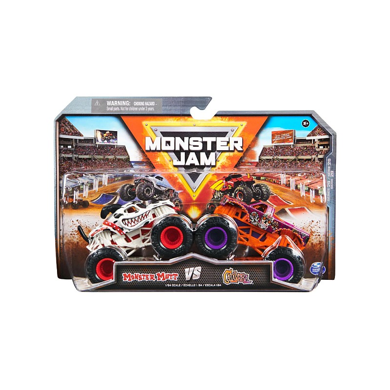 Get ready for epic confrontations with Monster Jam official trucks on scale 1:64 Die-Cast 2-Pack!