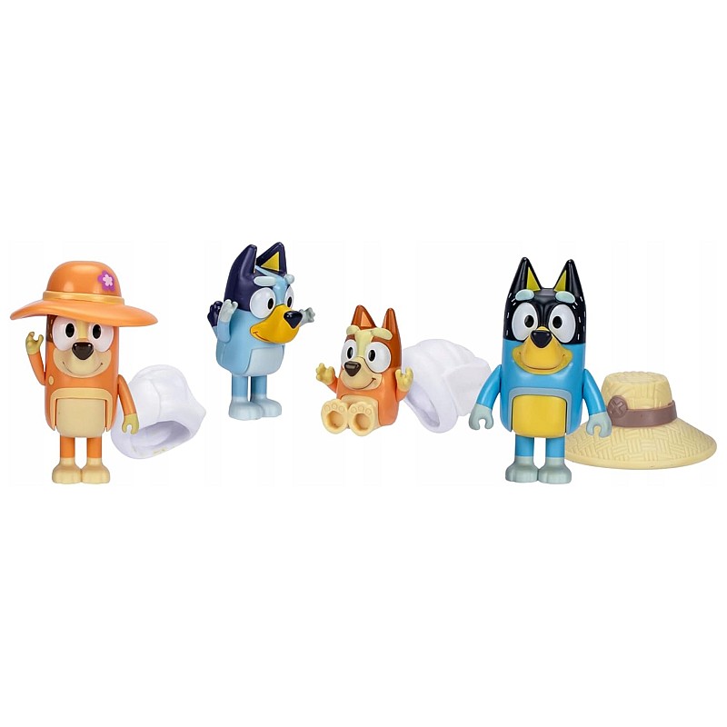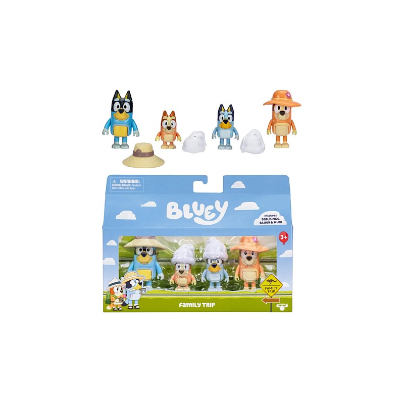 He collects the entire Heeler family in the 4 -figurine package Bluey "family trip".