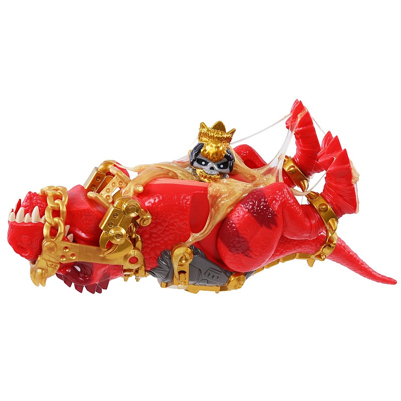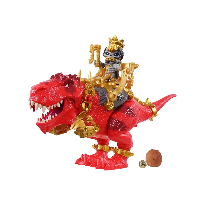A giant-sized T-Rex has been captured in a golden cage, but a treasure hunter is trapped inside the dinosaur.