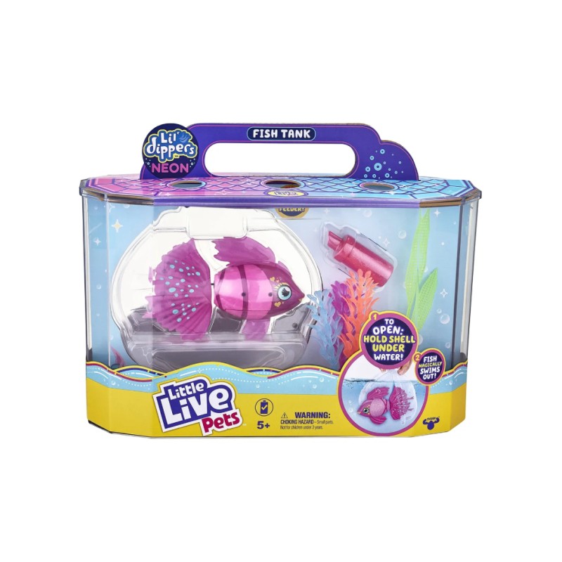 The fish tank comes with everything you need to create a beautiful home for Lil' Dippers, including colorful neon plant accessories.