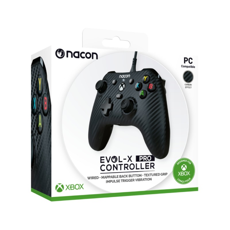 Nacon Entry Level Controller Carbon is a game controller designed for Xbox Series X, Xbox One and PC.