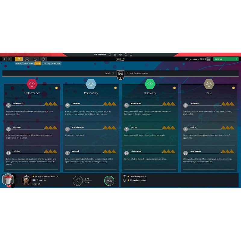 - Physical development, specific training, special training for certain races and a social life: it is up to you to find the right balance for all the different aspects under your control to be able to optimize your rider's performance and guarantee your success.
