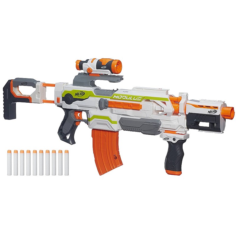 Guys, for every battle or mission, you can now build your own blaster with the Nerf N-Strike Modulus ECS-10 blaster.