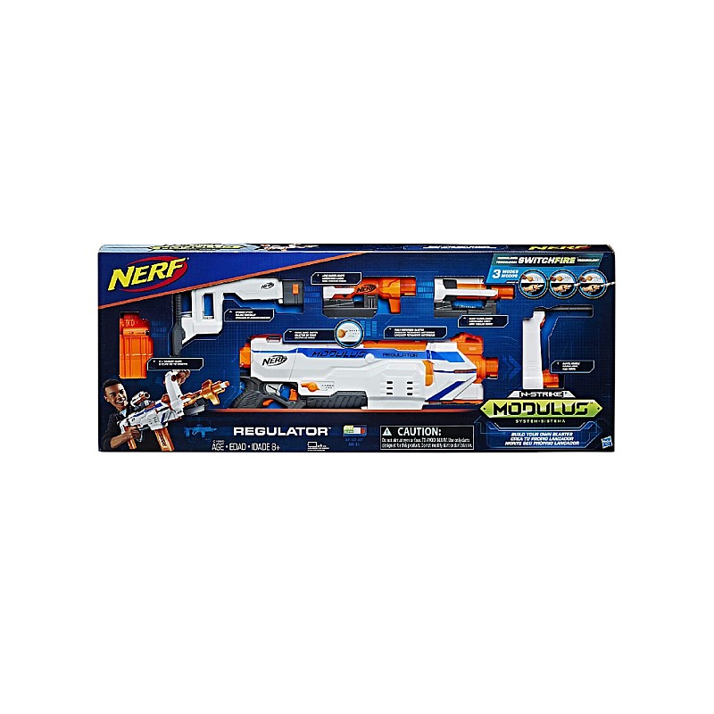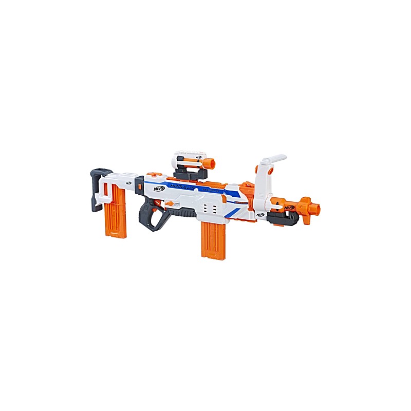 This automatic Nerf blaster includes 2 x clips of 12 darts and 24 Nerf Elite foam darts. Requires 4 1.5V C alkaline batteries (not included).