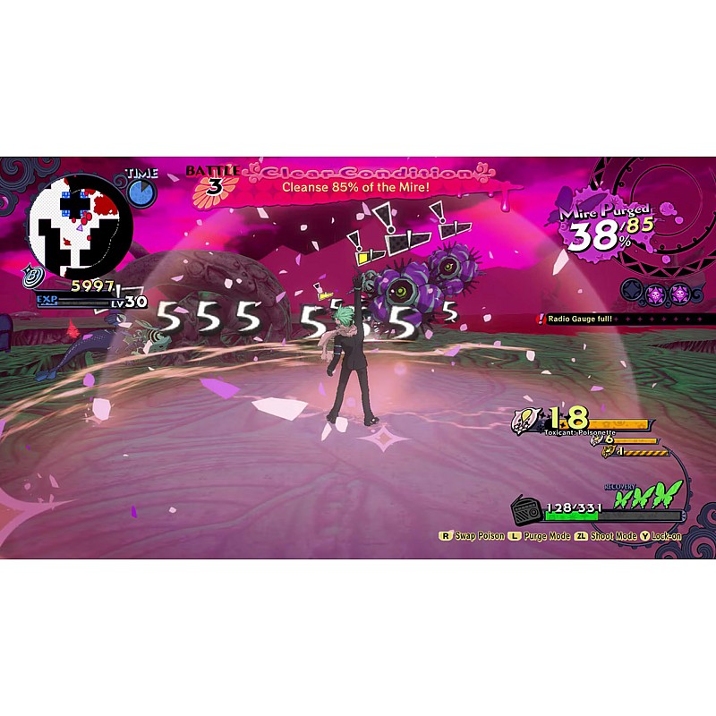- Unlock new weapons like poison bombs, speakers and even fire poisons by purifying areas and improve your Poisonette's stats through your dialogue choices