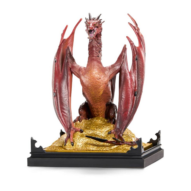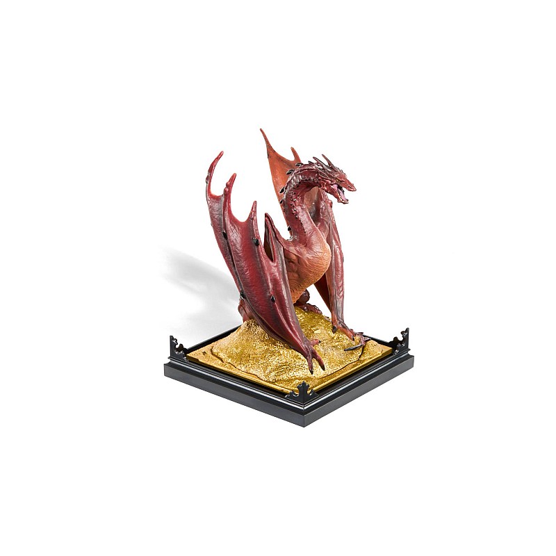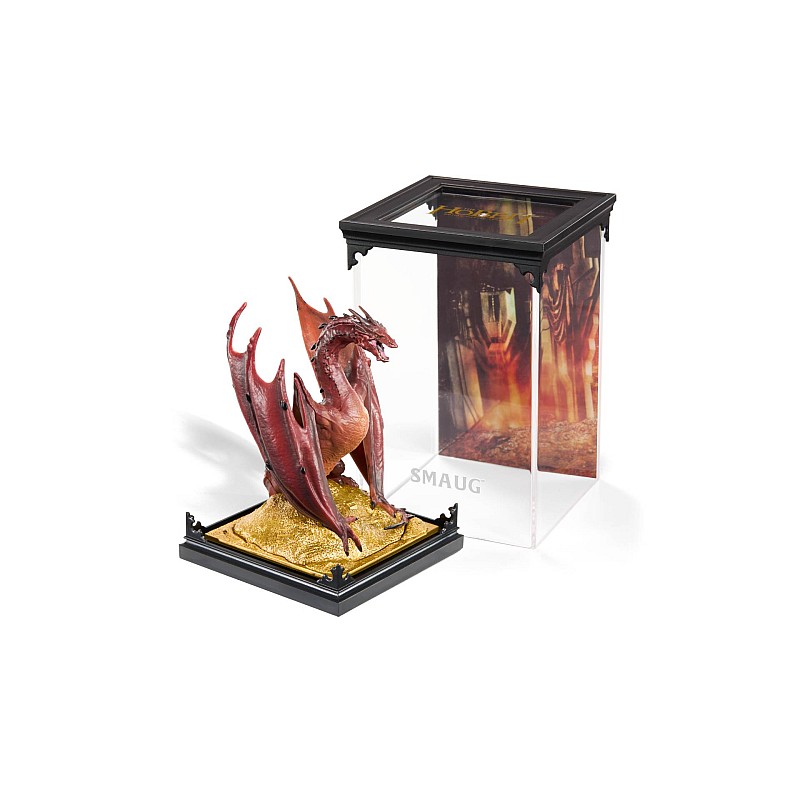 This three -part diorama includes a background lid, base and detachable figurine of the Smaug Dragon.