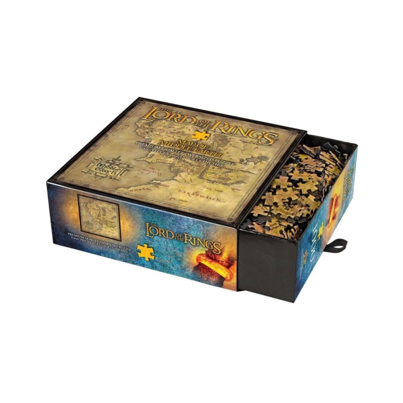 Embark on a journey through Middle-earth with this beautifully crafted 1000-piece puzzle featuring the iconic Lord of the Rings map.