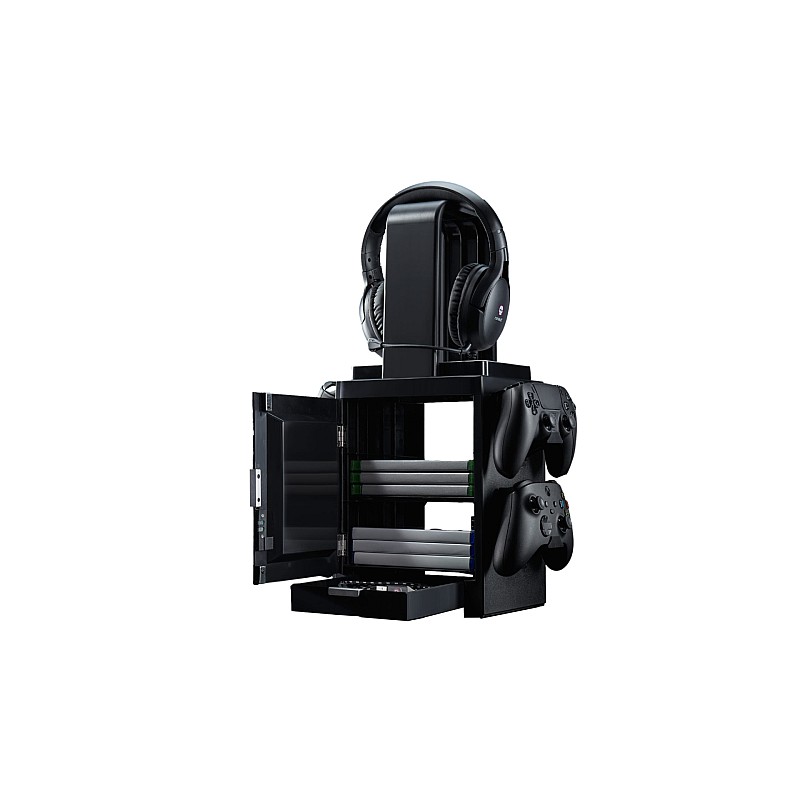 It features dedicated headset and controller stands, an integrated tray to store mobile devices and storage space for up to 10 Xbox One/Xbox Series X|S games or movies.