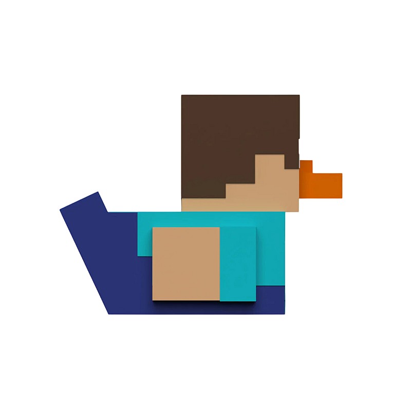 This is transformed into a rubber duck, keeping Steve's signature features like brown hair and blue clothes, but in a more cute and playful design.
