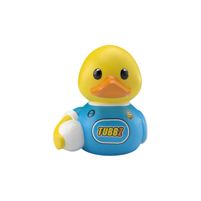 The Mini Football Tubzi toy is dressed for the crowd in a vibrant kit inspired by the classic tubbz colors.