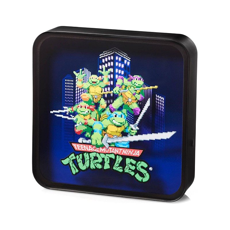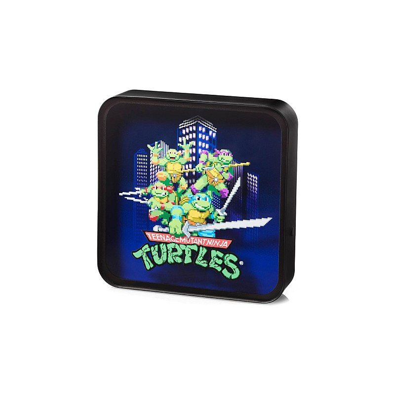 Light up the canals with this detailed lamp featuring the Teenage Mutant Ninja Turtles logo, the four characters and a New York City skyline as a backdrop.