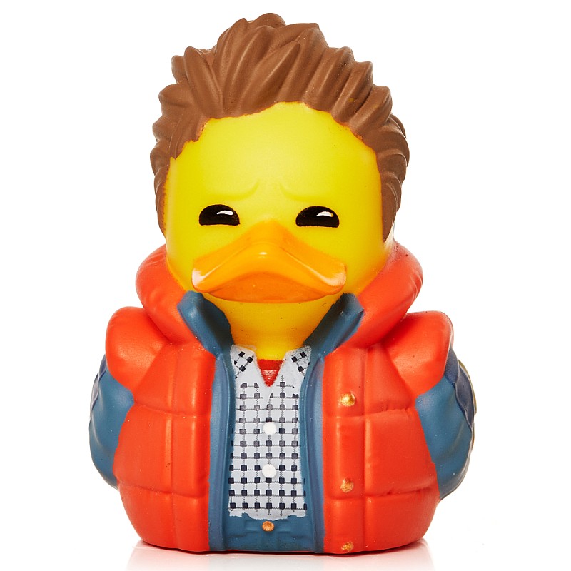 This figure represents Marty McFly, the protagonist of the cult series Back to the Future (BTTF), in a unique and comic style: transformed into an adorable duck.