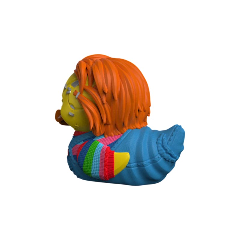 Comes in a mini collection bathtub with the Chucky logo.