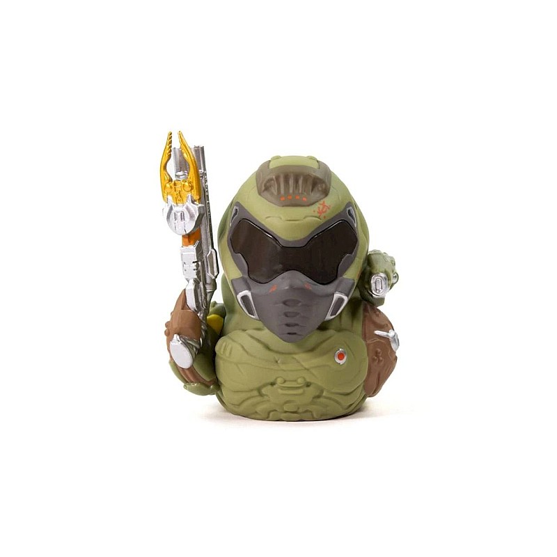 Wearing his iconic green armor, he is prepared for the eternal fight against hell, even as a miniature cosplay duck.