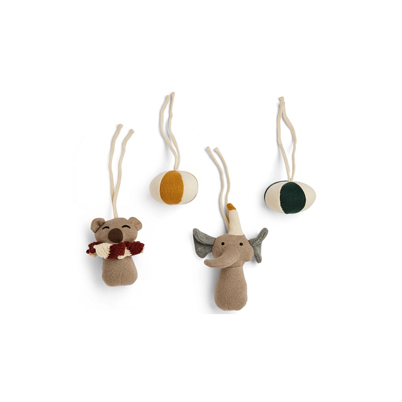 Easy to attach to activity stands, strollers or car seats, these toys have a bell that rings when touched, stimulating your child's senses and encouraging exploration.