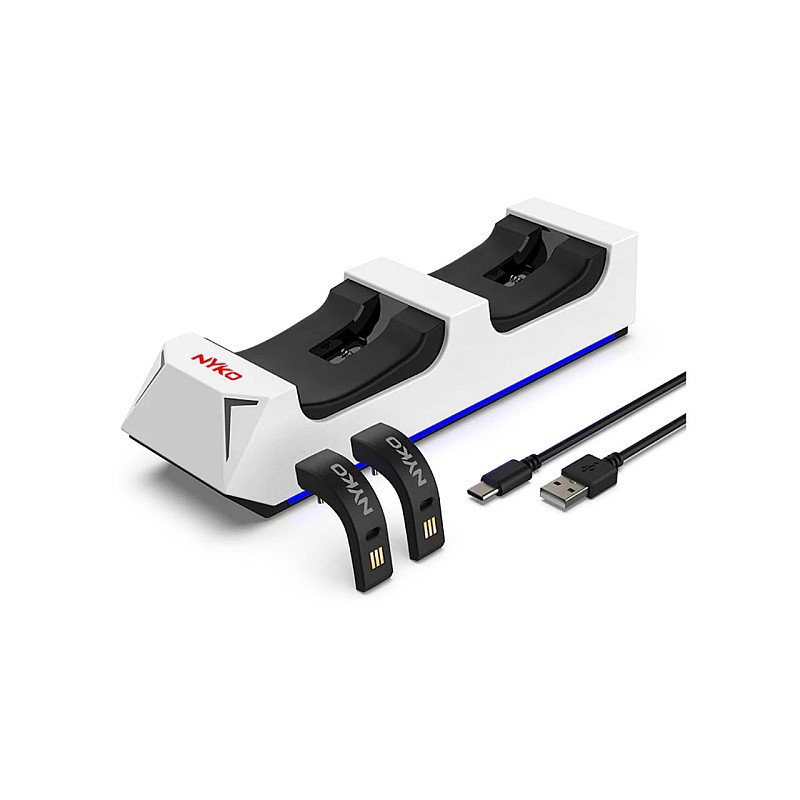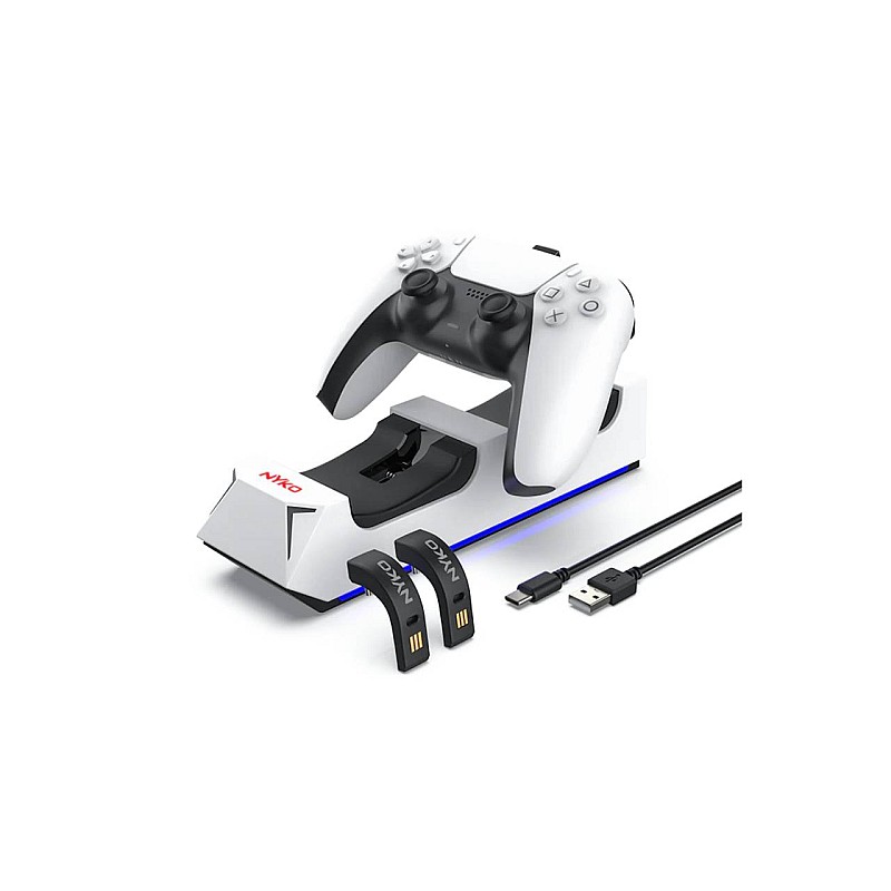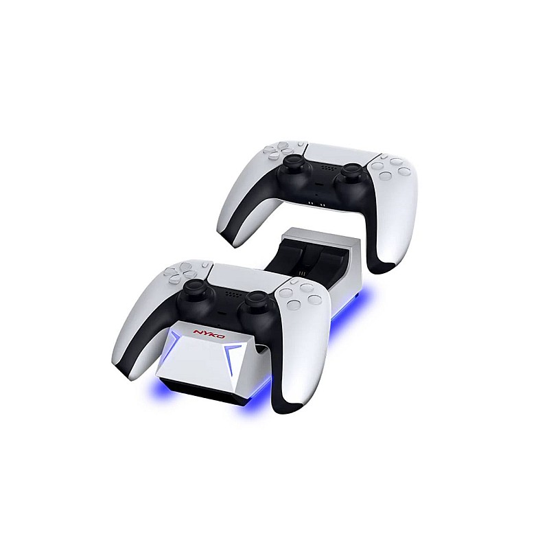 - The Double Port Recharge Base simultaneously charges 2 PlayStation 5 Dualsense controllers