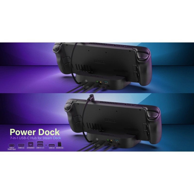 Enhance your Steam Deck experience with the NYKO 7-in-1 Power Dock – a complete charging and connectivity solution.