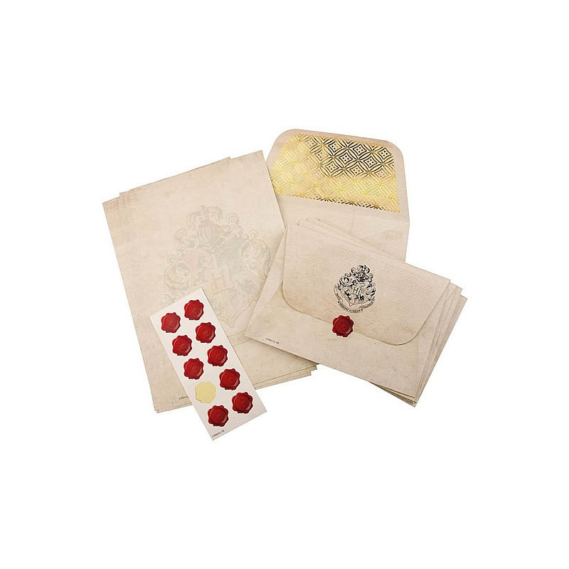 The set comes with 20 sheets of A5 writing paper, 10 envelopes with the Hogwarts coat of arms on the back and 10 "wax seal" stickers to give your letters an authentic touch.