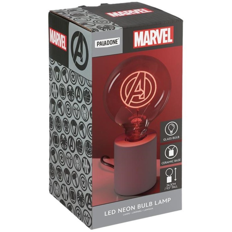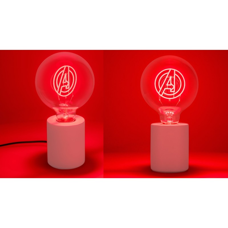 Its decorative LED E27 decorative bulb has a filament in the form of avengers logo, which illuminates with a fun red glow.