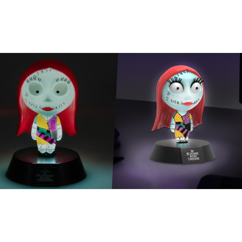 The light is shaped like Sally from The Nightmare Before Christmas. Turn on the light to cast a soft, warm glow in the room.