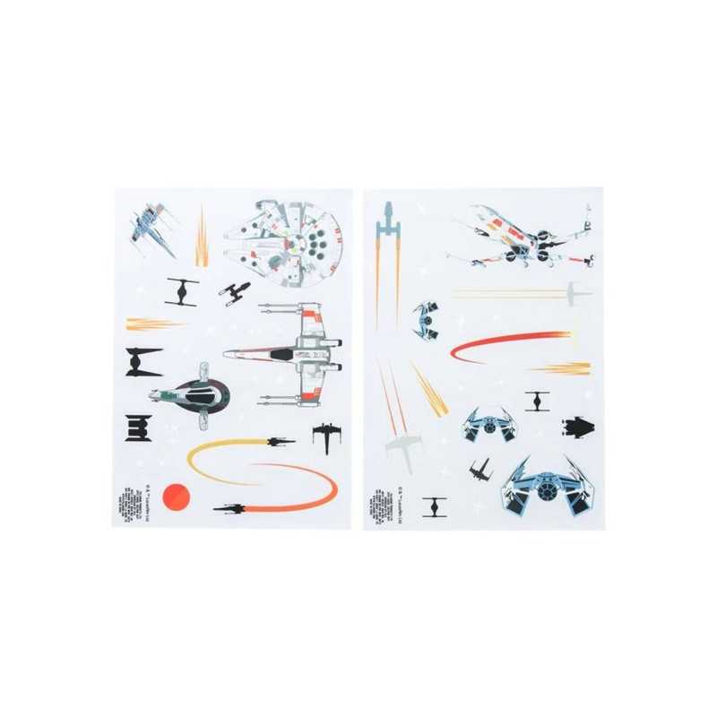 Create your own scene in front of the Death Star backdrop with the included set of removable and reusable decorations.