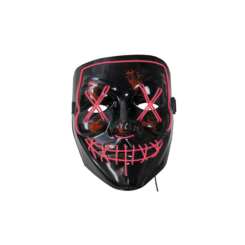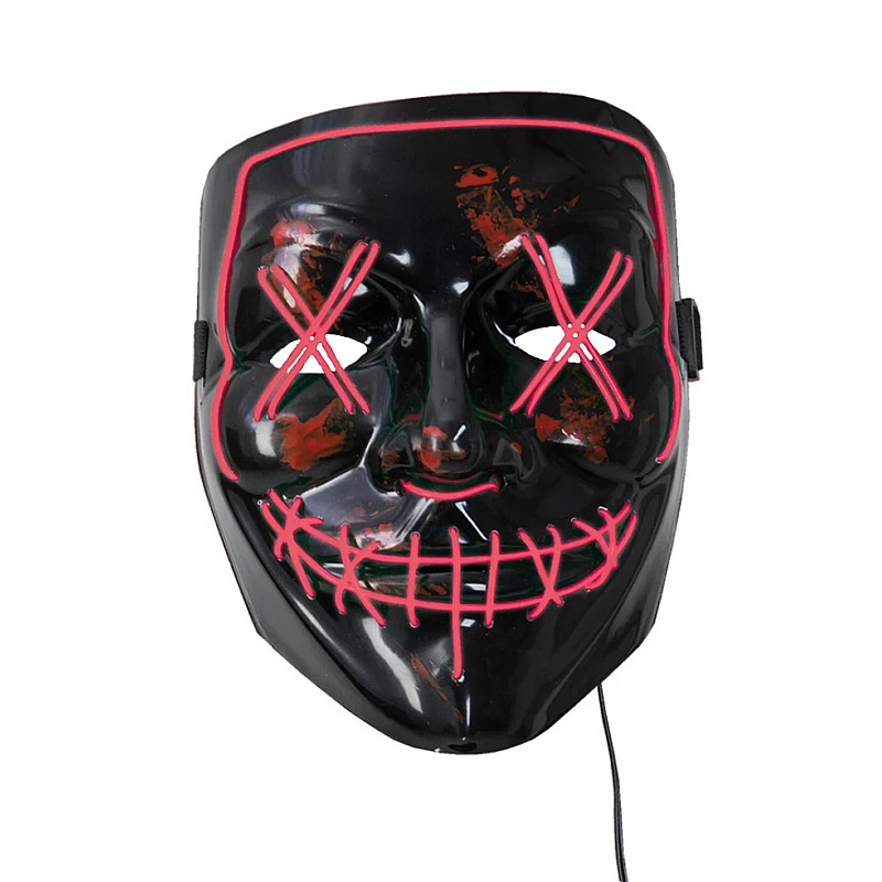 The LED mask is powered by 2 AA batteries with 3 flashing modes: Steady On, Slow Flash and Quick Flash (Batteries not included).