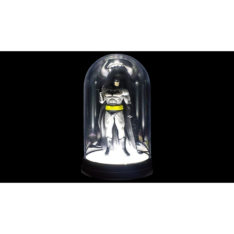 The Dark Batman himself sits proudly inside the bell-shaped jar, which lights up when turned on.