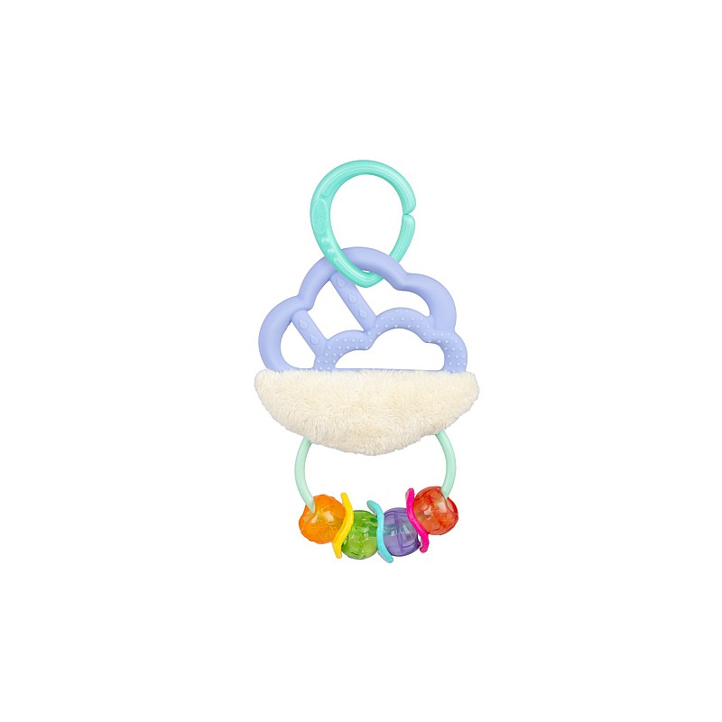 On the rainbow, there are beads of different shapes that rattle when sliding back and forth, and the silicone part is soft and comfortable to chew when the baby has inflamed gums.
