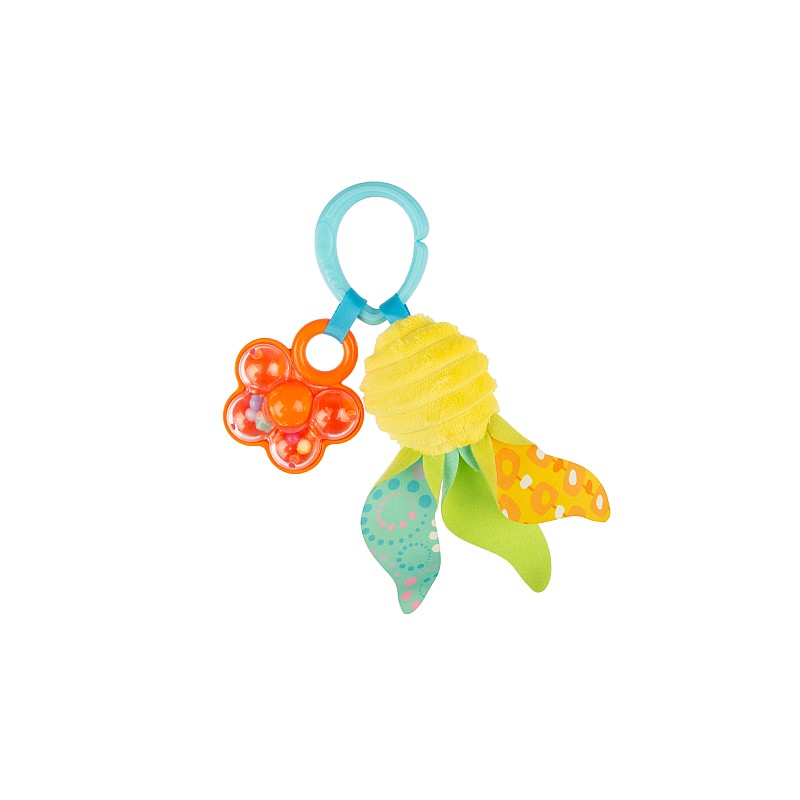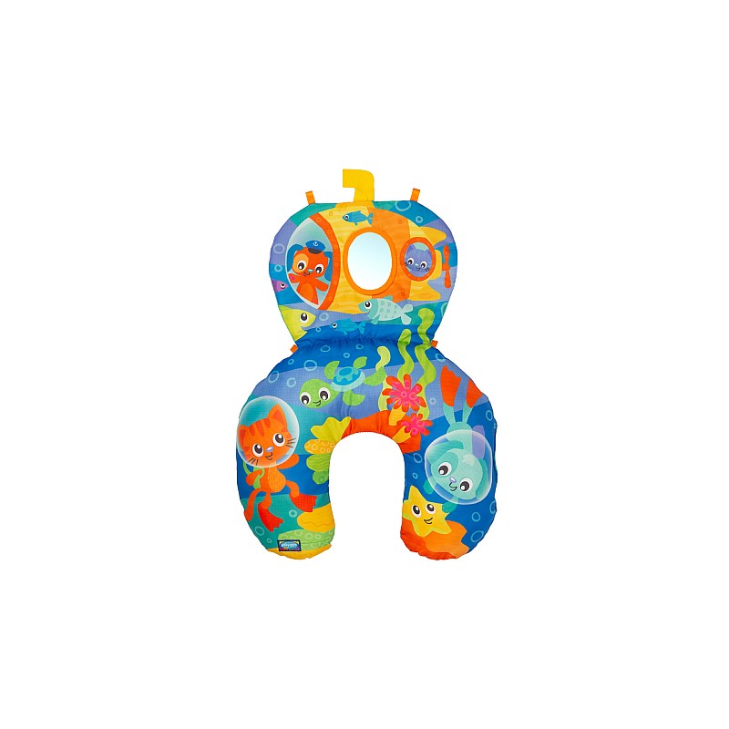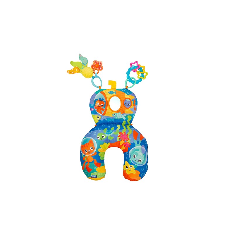 The pillow integrates removable toys for movement and supports the baby in exploring tummy time.